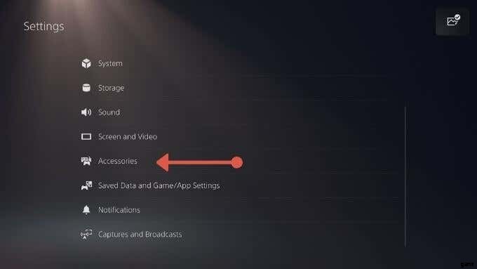 - 次に、デバイスに移動します (PS4) または アクセサリ (PS5) .