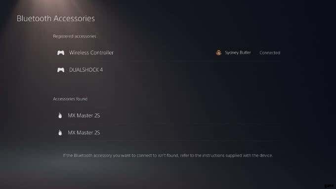 Bluetooth 周辺機器の場合は、Bluetooth ヘッドセットまたは別の Bluetooth デバイスを接続するのと同じ方法で接続します。 PS4 と PS5 のみが Bluetooth 周辺機器をサポートしているため、その手順について説明します。問題のスクリーンショットは PlayStation 5 のものです。