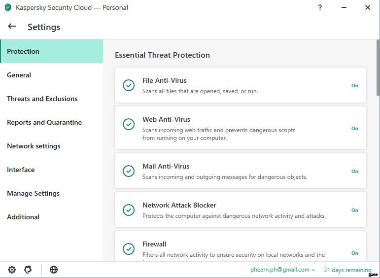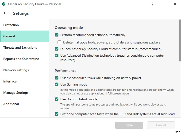 他のウイルス対策ソフトウェアでは、設定メニューでゲーム モードを有効にする必要があります。 Kaspersky はその一例です。