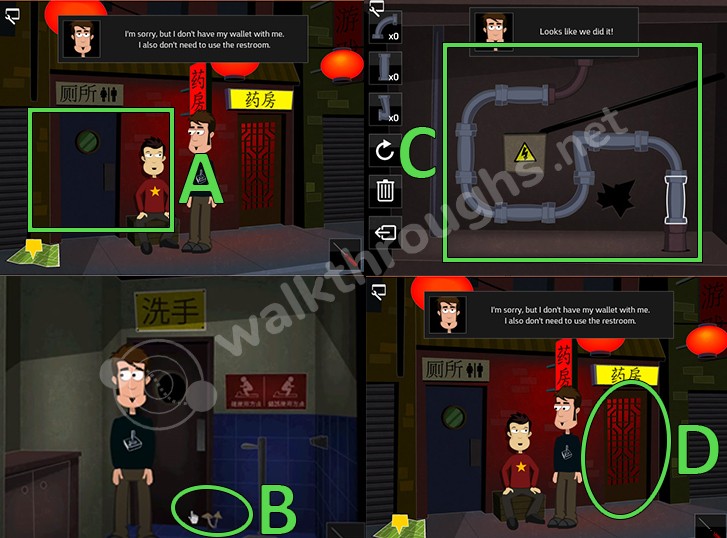 - チャイナタウンに行きます。 男性にトイレを使ってもらいます。 (A)