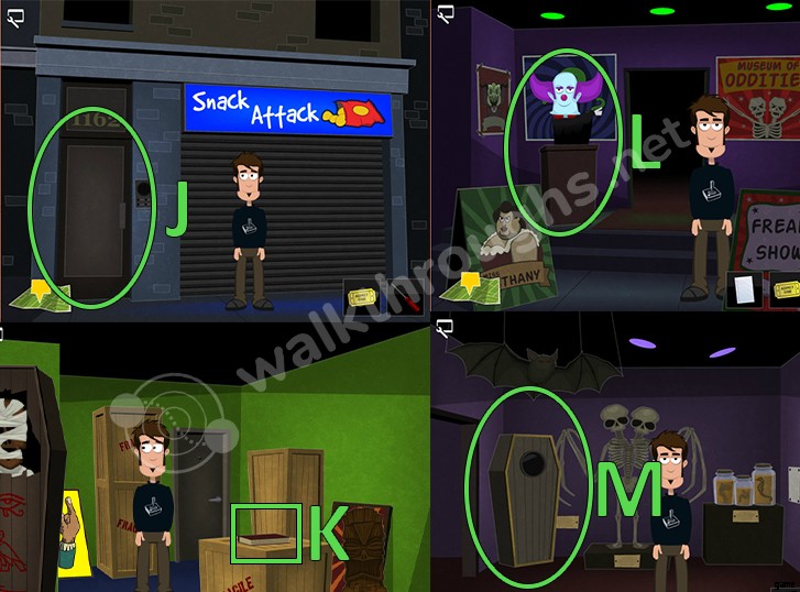 - 奇妙な博物館に行きます。 ピエロと話す 彼の博物館に行って調べます。 マスクをクリックします 真ん中に何かのコードを含むメモを見つけます。 (A)