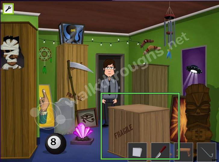 - クーパーのアパートに行く また。彼の寝室に行き、スツールを集めます ポスターを削除します 壁から。 (B, C)