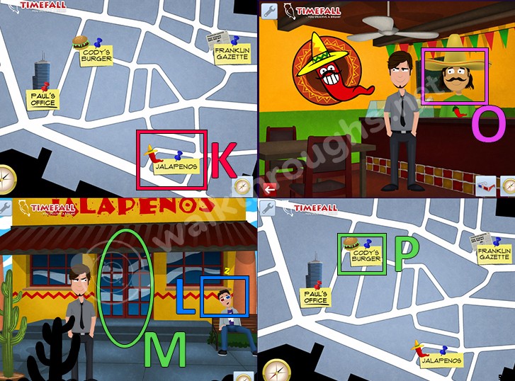 - 男性と話してください。 ファイブ アラーム チリを注文します。 彼にチリボトルを持ってくるように頼んでください。 (O)