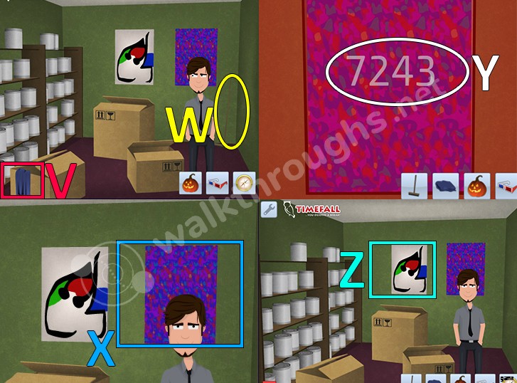 - 警備員と話してください。 ハンカチを組み合わせて、 かぼちゃ そしてほうき 大きな人形を作成します。 その後、ガードをクリックします 彼の気をそらす (F1)