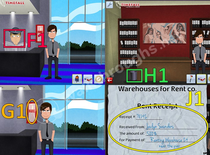 - 建物の左側に行きます。 バケットをクリックします 手紙を集めるために。 (H1)