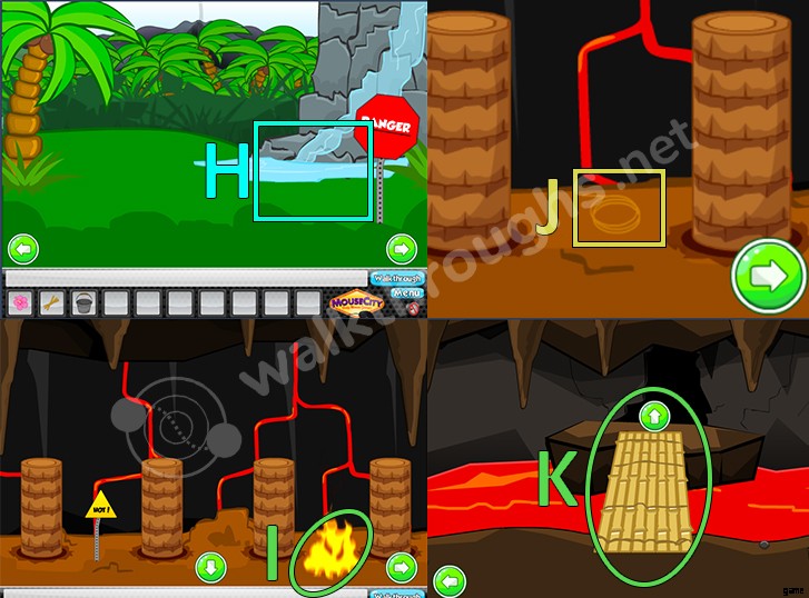 - 橋を建設する 竹の棒を使って そしてロープ 次の段階に進むために。 (K)