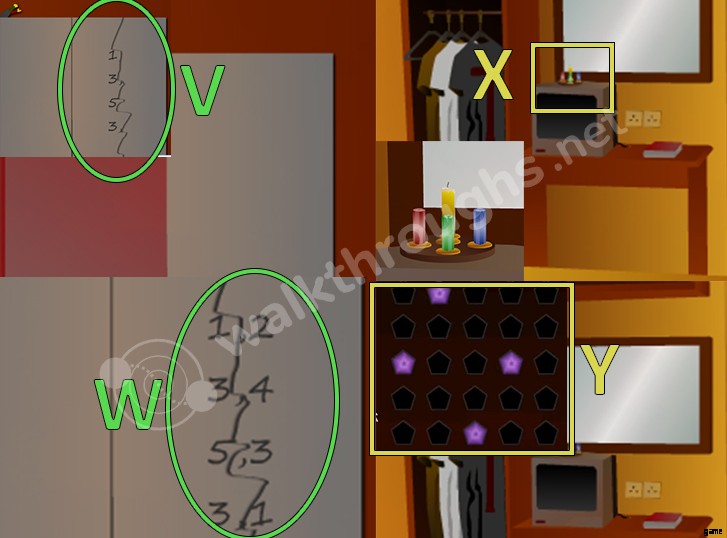 - ワードローブをクリックします 4 つのクリスタルを配置します 正しい場所に。 (Y)