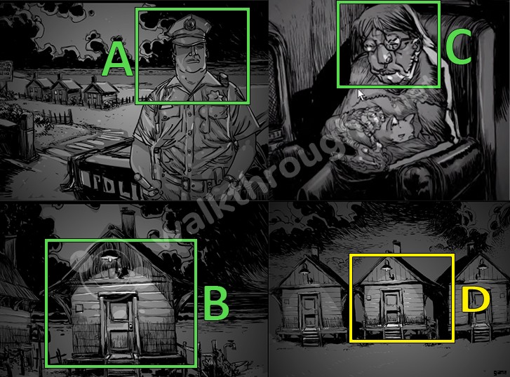 - 左側の家に行きます。 タイヤの跡をクリックします。 (G)