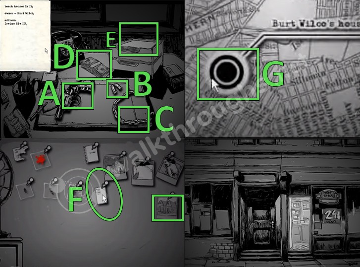 - 持ち物にあるシティ マップ アイテムを使用して、バート ウィルコの家に行きます。 (G)