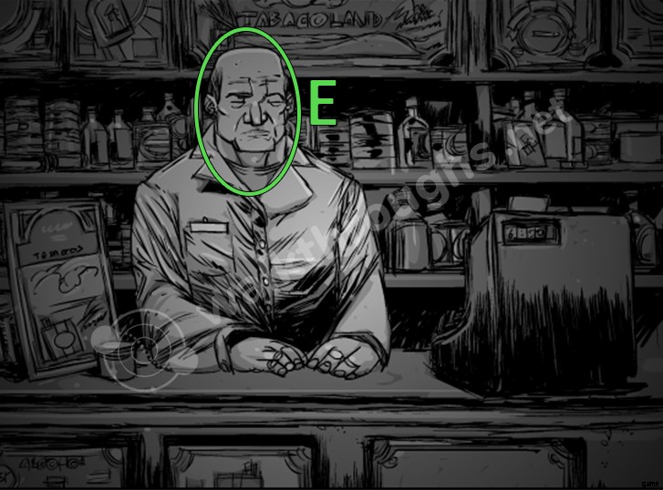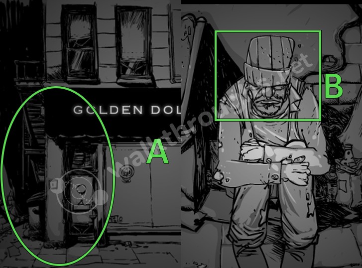 - 路地を下ってボックスをクリックし、谷の左側に行きます。 ホームレスの男性 が待っています。 (A)