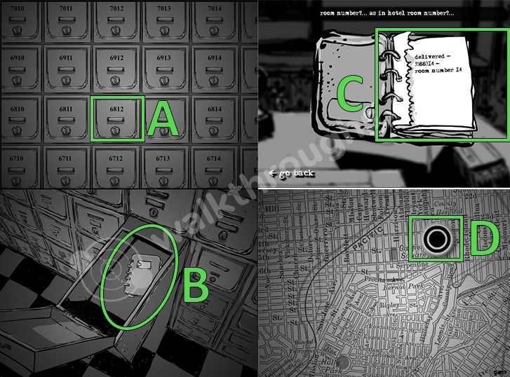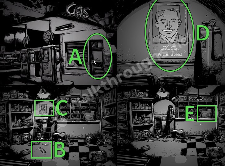 - セーフ ボックスを開けます 鍵で ガソリンスタンドで見つけた . (B)