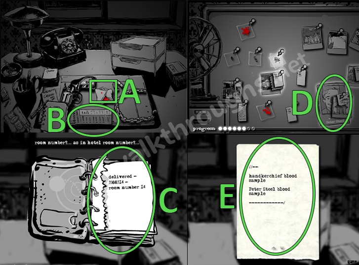 - リボルバーのほこりを払う 、箇条書き そしてネックレス 指紋の手がかり 、指紋テープで指紋を収集します それらを払い落とした後。 現金を集める 机の上で。 犯罪現場に行く 再び戻ってきて、レポート ビンに新しいレポートがあります . レポートを読む レポートを追加します リードに。 . (A、B、C、D、E)