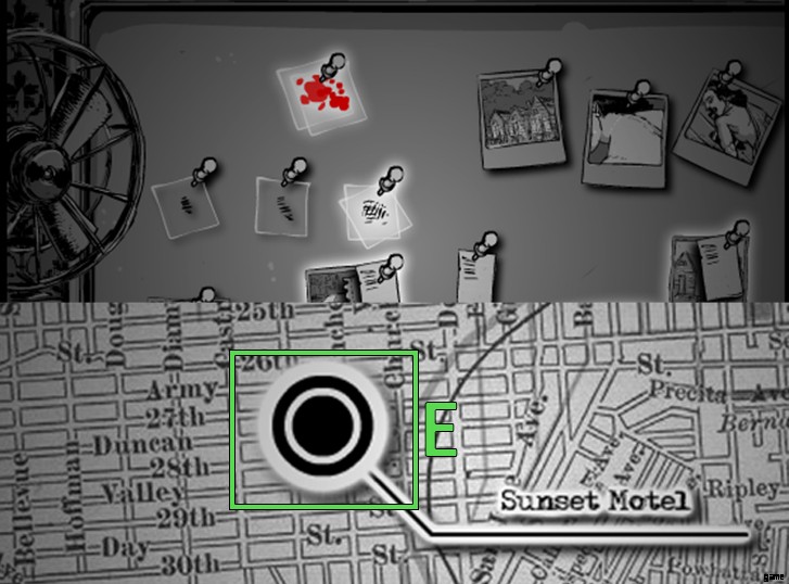 - レポート トレイでは、指紋を払い落として新しい証拠を探したり、リード テーブルにピン留めされたアイテムをクリックまたはドラッグして、手がかりを組み合わせたりすることができます。