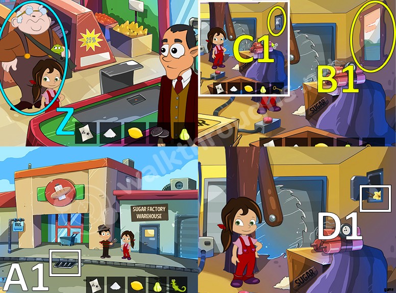 - 製糖工場に入ります。 額縁を削除します。 (B1)