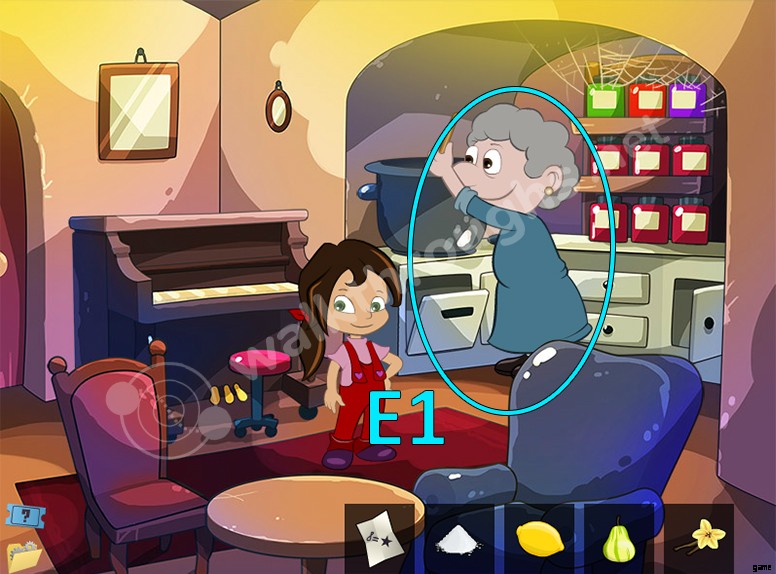 - キッチンに入り、 クッキーを集めるために戸棚をクリックしてください。 (W)