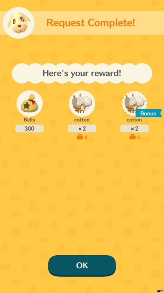 イザベルからボーナスを受け取ると、ゲームの後半で使用する多くのアイテムが提供されます.次に、97 MB のファイルをデバイスにダウンロードする必要があります。ゲームを完了すると、1000 個以上のベル、ハチミツ、3 つの種などを含むログイン ボーナスが付与されます。次のような 2 つの新しい目標がアンロックされます: