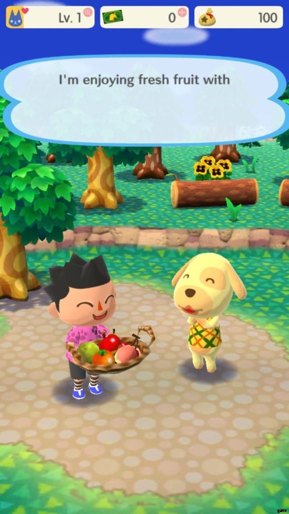 紹介の後、イザベルがあなたがそこに到着すると彼に言ったので、あなたを持った後に驚く犬のゴールディに会います。さらに先に進むにつれて、ゲームはエキサイティングになります。多くの結末があり、あなたのすべての決定が重要であり、結果と他のキャラクターの行動を変えます.ゲームプレイ中は、たくさんの楽しい仕事をして、友情ポイントやハートなどをたくさん獲得する必要があります。あなたの最初の仕事は、木を振ってゴールディのためにリンゴをつかみ、レシピを完成させることです。その後、最大 100 個のベルと 2 個の綿を取得し、後でゲームを進めるために使用できます。