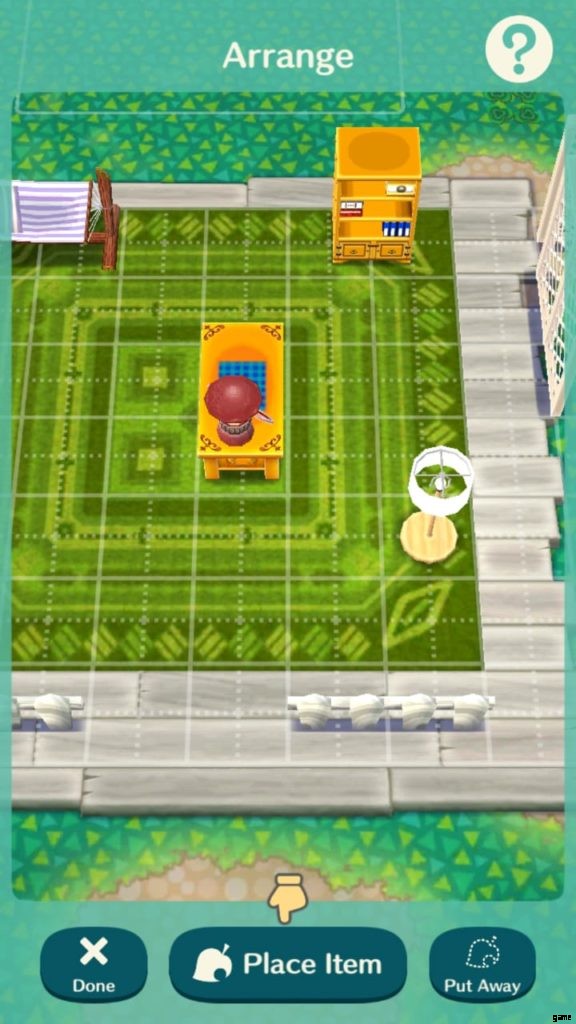 最初に作成する必要があるアイテムはソファで、ゲーム内通貨を支払うことで手順を完了する必要があります。ゲームプレイを通して、イザベルやゴールディのような他の NPC とコミュニケーションをとっていることに気付くでしょう。ソファを作った後、ゲームはポイントを獲得し、ロックを解除してさらにアイテムを飾ることができます.次の仕事は、画面の右上にあるグリッド アイコンをタップするだけで簡単に続けられるスペースの装飾です。タップすると、キャラクターがキャビンやキャンプ場で家具やアイテムの配置を開始します。