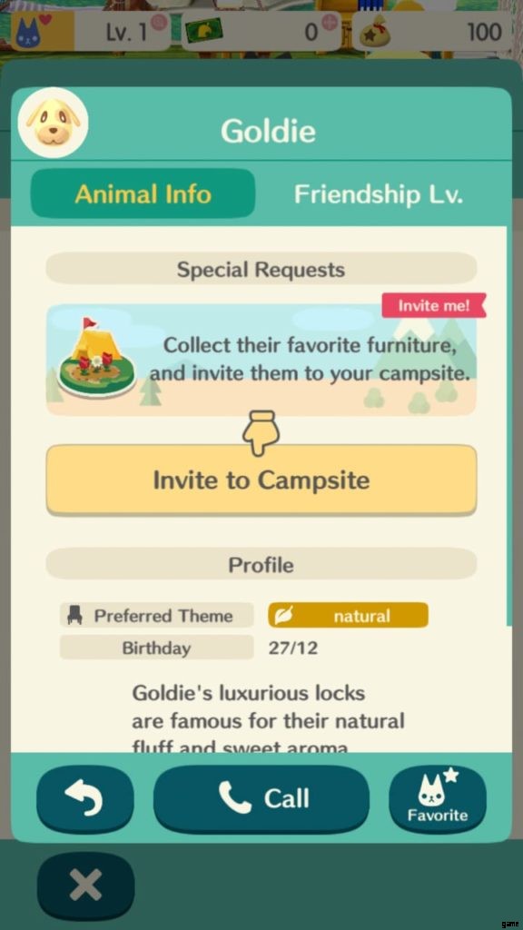 キャンプ場を飾った後、最高の仲間の 1 人であるゴールディをキャンプ場に招待することができます。その次に、動物の仲間のリクエストを完了して、ランクを上げてみてください。まもなく、イザベルからさまざまなコンテンツを楽しめるギフトが届きます。