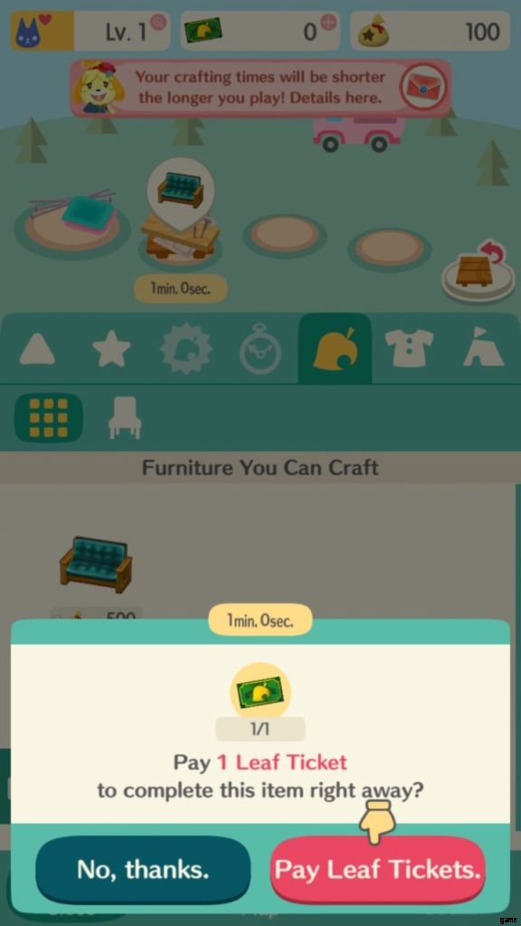 開発者は初めて、モバイル版の新しいゲーム内通貨、どうぶつの森:ポケット キャンプを導入しました。リーフチケットを使用して、タイマーを少し停止したり、原材料がなくても貴重なものを作成したりできます。リーフチケットの入手方法は?究極の質問は確かに頭に浮かぶでしょう。その答えは、ゲーム内のタスクを完了することですぐに手に入れることができるか、アプリ内ストアにアクセスしていくつかを購入することができるということです.ゲームプレイを通して、リーフ チケットを特別なイベントと交換することができます。これにより、キャンプ場に何人かのプレイヤーを引き付けることができます。