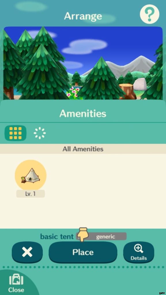 キャンプ場に新しいアイテムを配置するために使用できる新しいボタン「アイテムを配置」を発見します。配置したら、指で動かすか、画面を 1 回タップして回転させます。物を片付けるには、「片付ける」ボタンをタップしてから、保管するアイテムをタップする必要があります。完了したら、[戻る] ボタンと [完了] ボタンを押してレイアウトを保存する必要があります。
