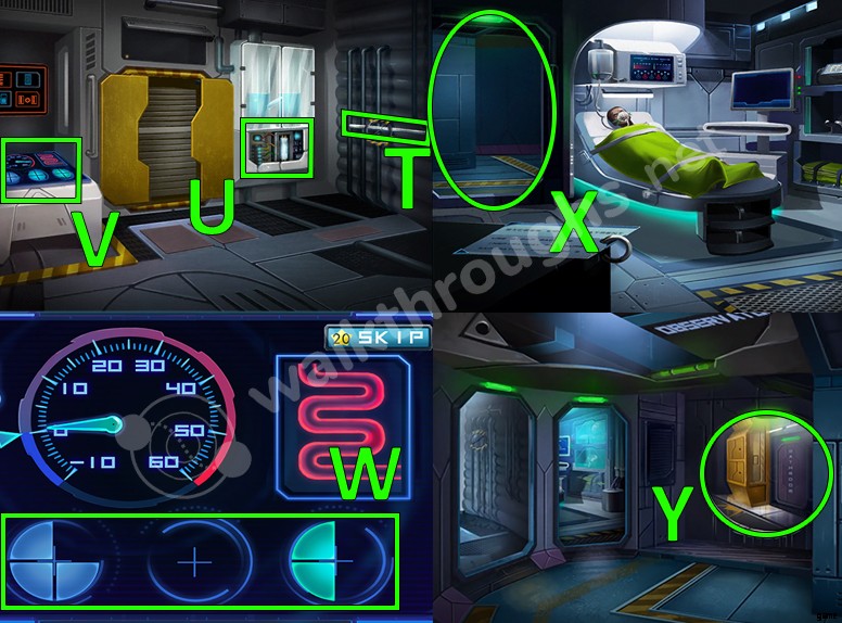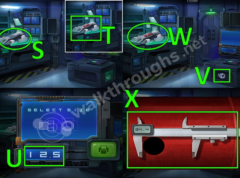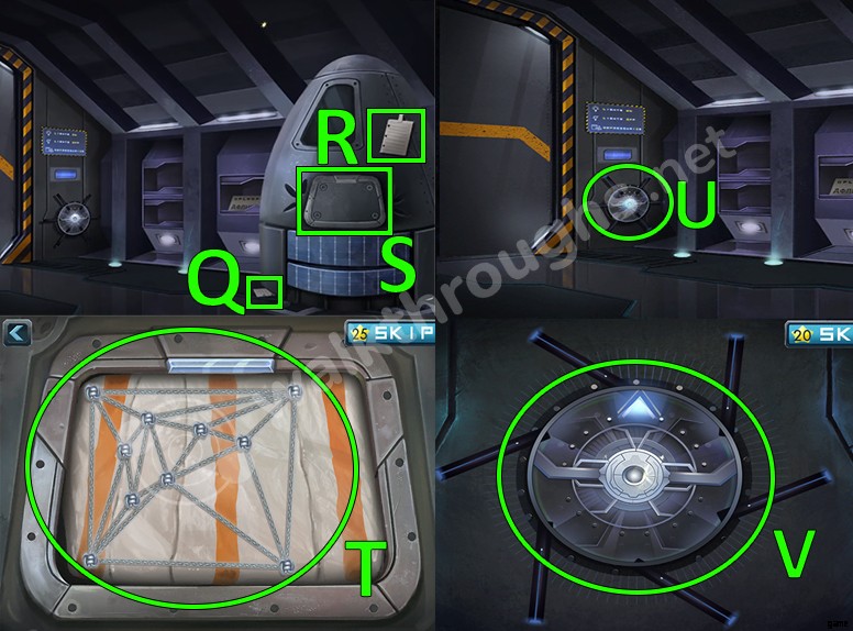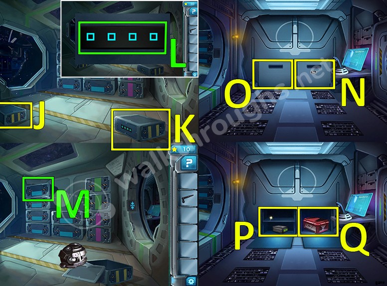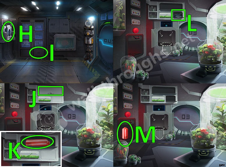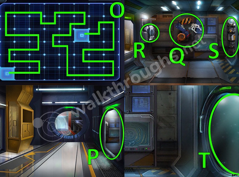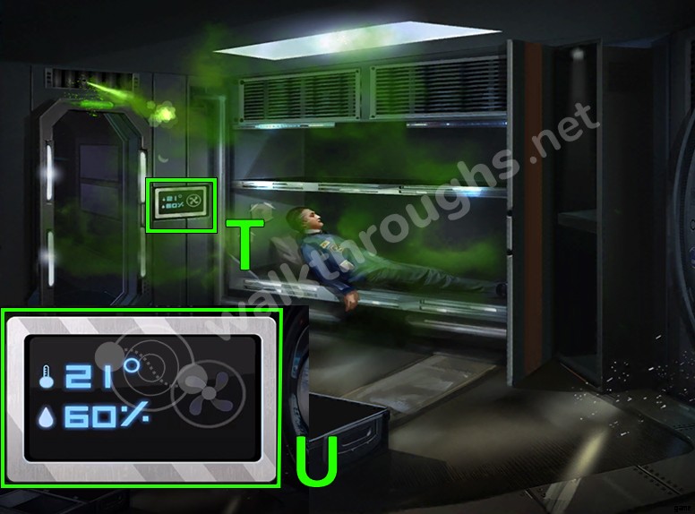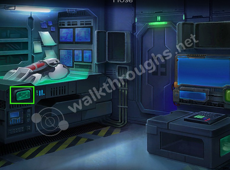 - ドアを通り抜けます 右の方へ。 最初のハッチを開く。 (O)