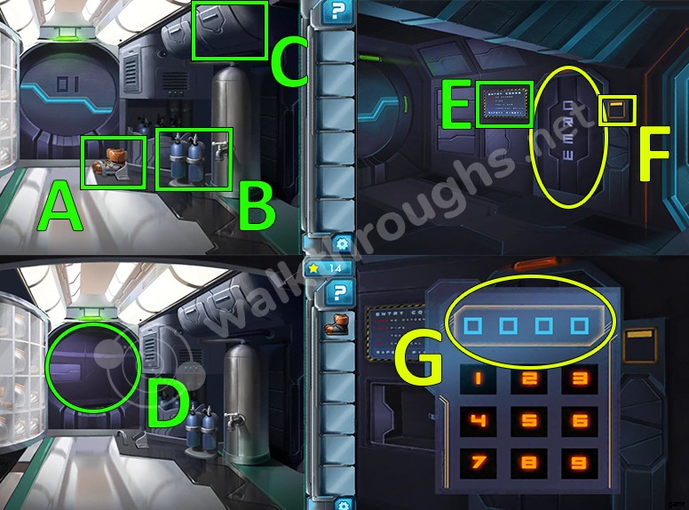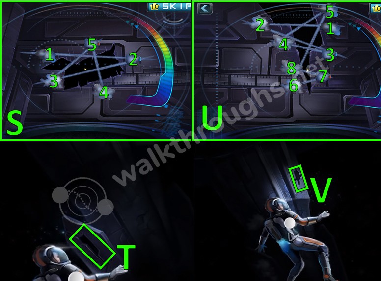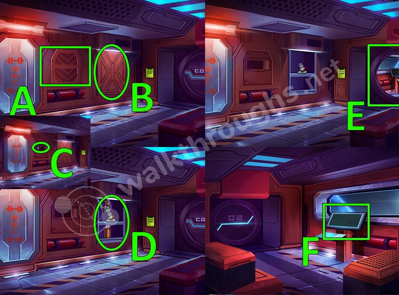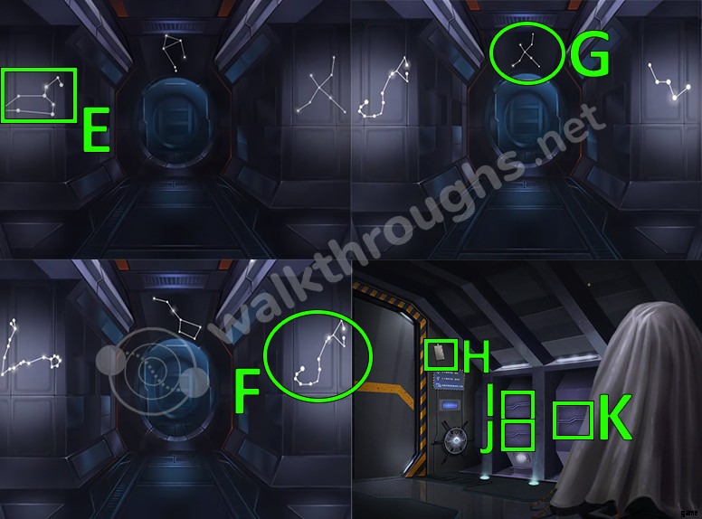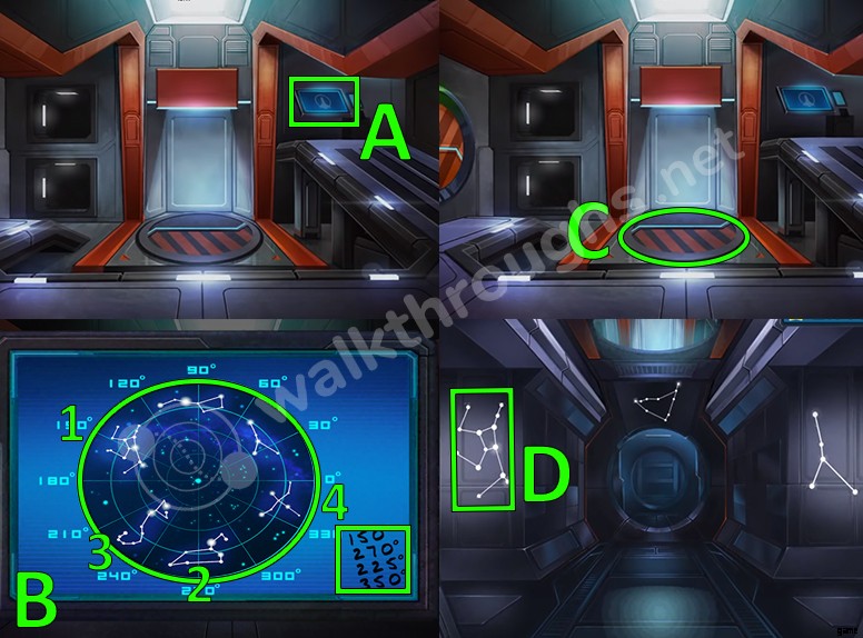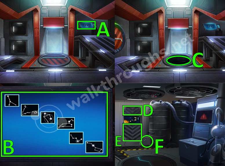 - 穴を降りる 床に。 星座をタップします そのモニターで見た順序で 次の部屋に行くまで。 (C)