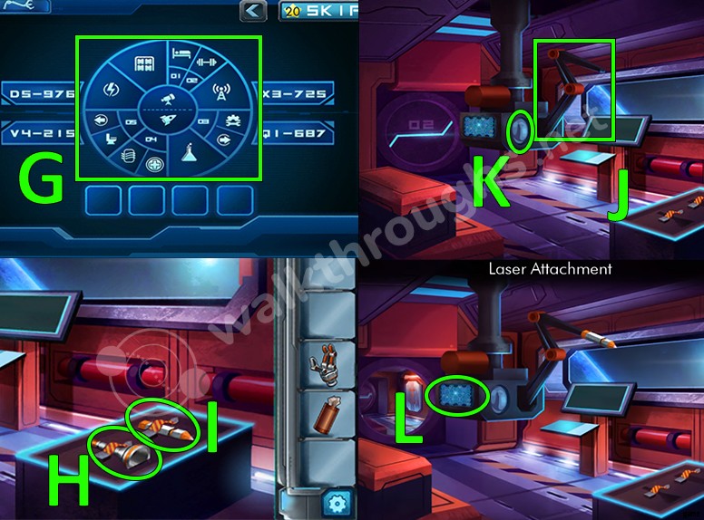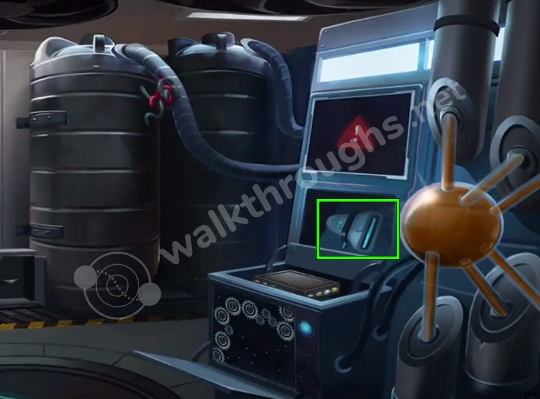 - モニターをクリックして、 レーザーを動かす 穴を探し回る 金属に。 見つけたら、それを切り裂いて駅の壁の中を見てみよう。 (N)