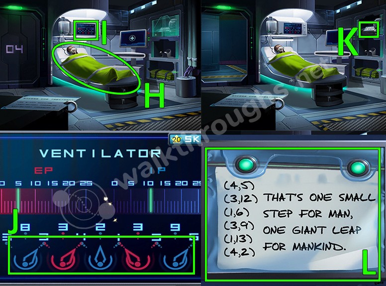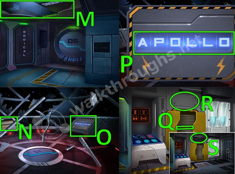 - ヒント 特定の単語を隠します。 各ペアの最初の数字 行を表します 各ペアの 2 番目の数字 列を表します。 あなたが探している言葉は APOLLO, です この単語は、次のパズルを解くために使用されます。 導火線を集める ロックされたパネルの内側。 (L)