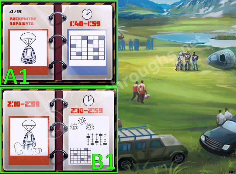 - 最終章の最後のミニゲームでは、 3 つのダイヤルを一致させる必要があります マニュアルに シャトルに合わせる必要があります マニュアルへ 4 つのボタンをクリックする必要があります。 マニュアルに示されています。 49 秒あります これらのアクションをすべて実行しないと、クラッシュします。 (B1)