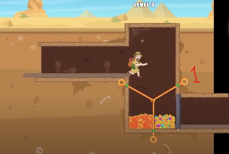 まず、ゲームは棒でロックされた宝箱を提示し、画面を指でタップするだけで箱のロックを解除するよう求めます。与えられた宝物のロックが解除されると、マップを受け取ります。チャートは、ピラミッドの方向に沿って隠された宝物へと導く秘密の道を提供します。マップに表示された道をたどり、途中で見つけたパズルを完成させてマスターになりましょう。地図を受け取ると、あなたのキャラクターは非常に興奮し、喉が渇いて砂漠にいることに気づき、洞窟に向かって動き始めます。