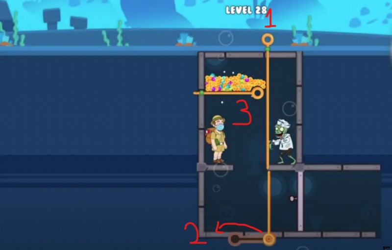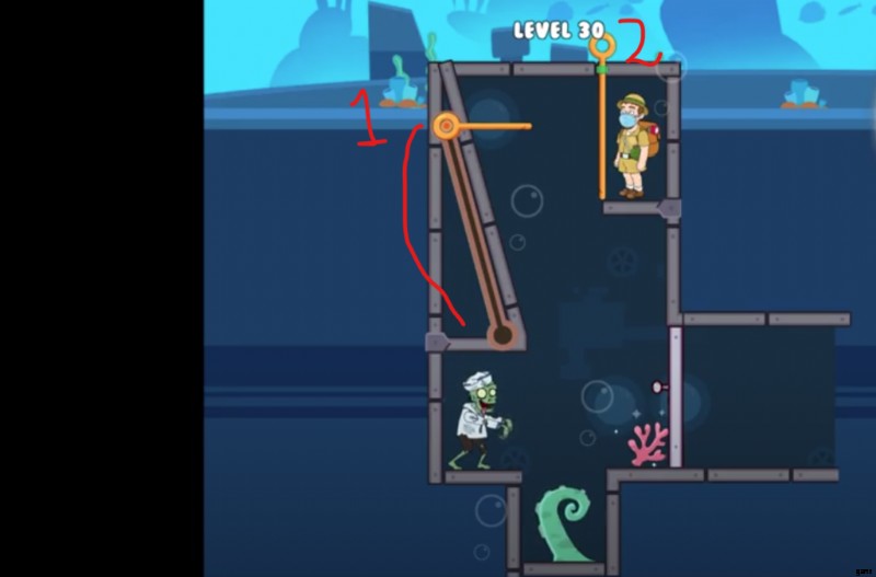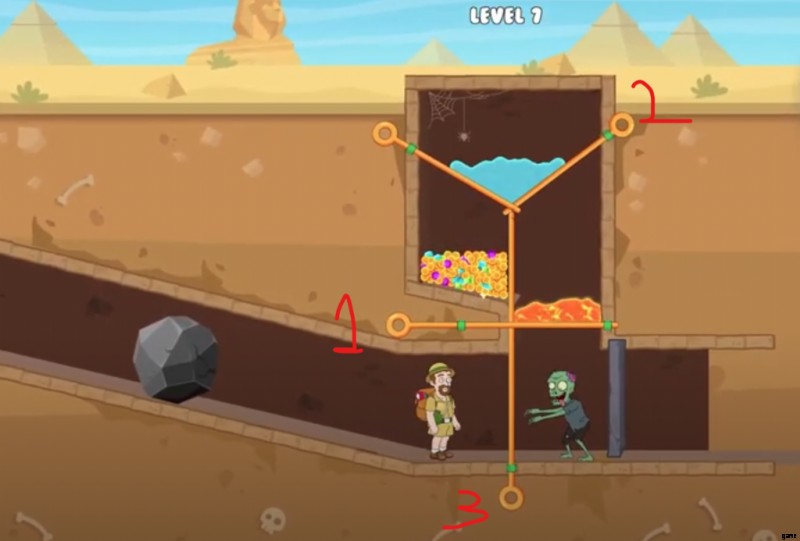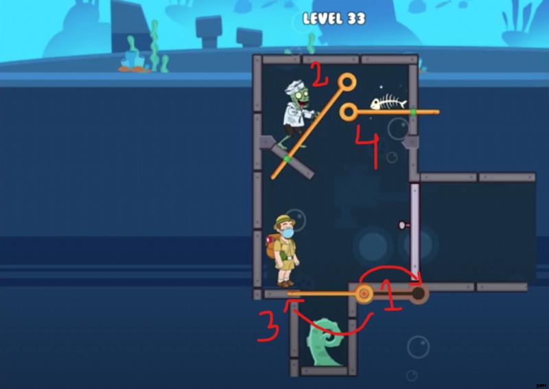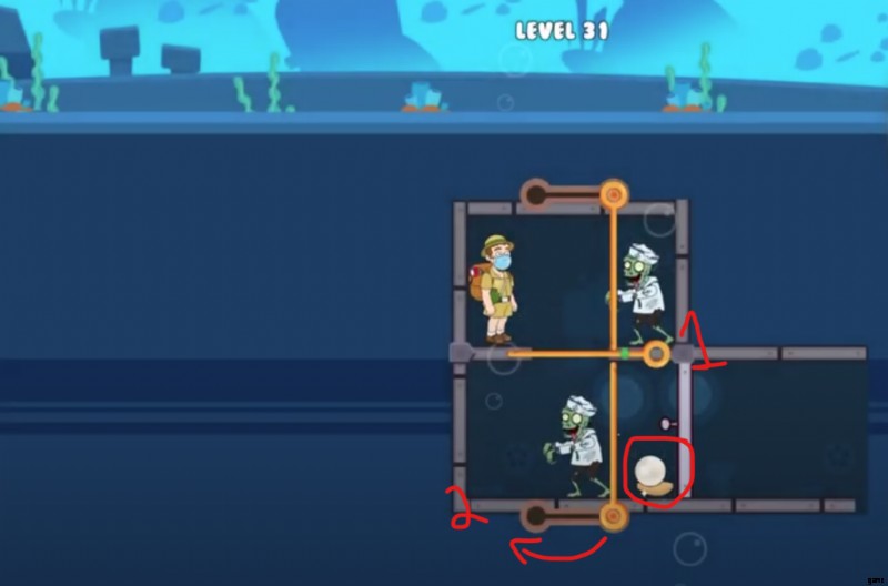 You required a pearl to open the door; therefore, the completion of Pull Him Out 31 Level is compulsory. Two vicious zombies await you over there, and you must deal with three sticks to complete the puzzle. Although the level seems tricky, the completion of the puzzle is very easy.