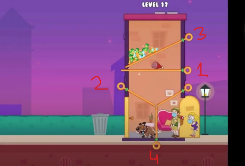 レベル 17 は、たくさんの現金、空腹の犬、鶏肉が含まれているため、少し難しいと感じるかもしれません。ステージを完了するには、前述の手順に従う必要があります。