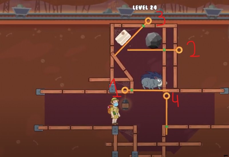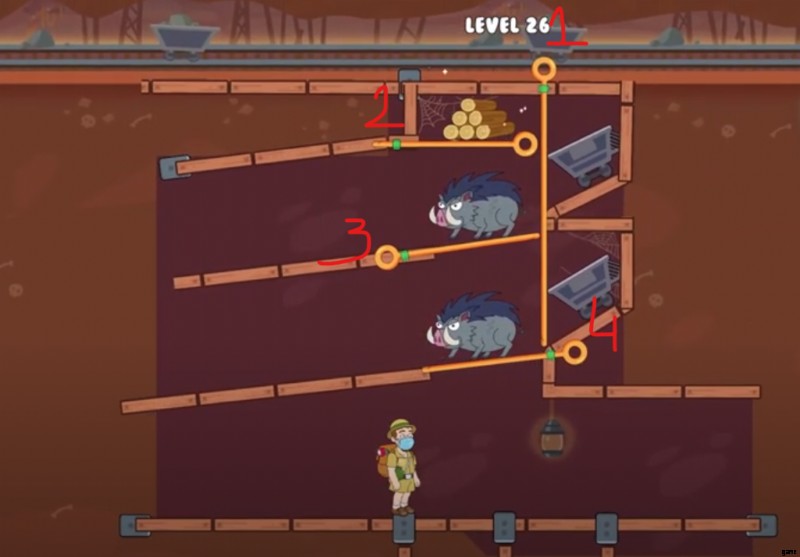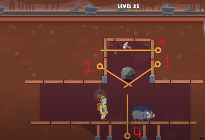 レベルをクリアしようとしているときに、イノシシの登場に怖がるかもしれません。イノシシがキャラクターを食べてしまう前に、イノシシを止めなければなりません。彼の上に置かれた石だけを使って彼を殺してみてください。