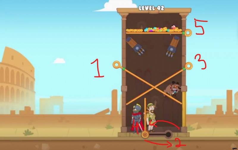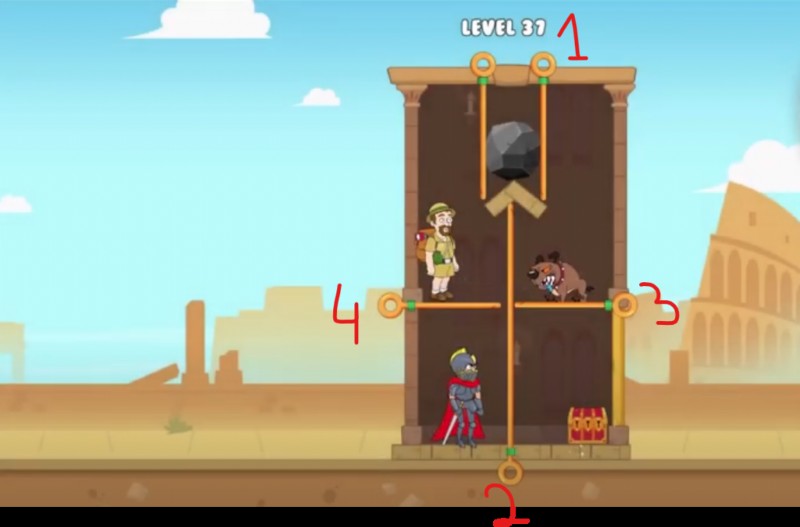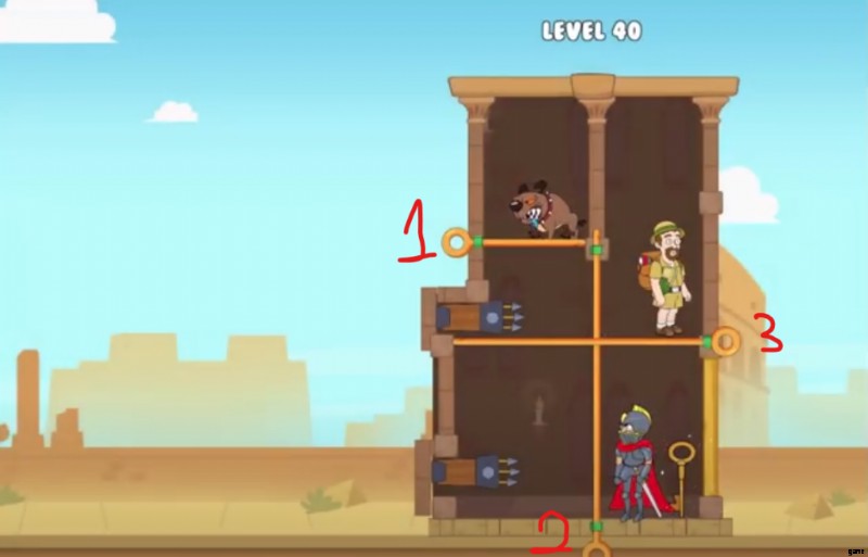 Again an angry dog, a knight, and two hurdles await you in the fortieth level where you must use your wits to overcome all obstacles and complete the puzzle to achieve the given task.