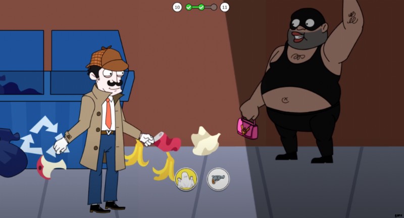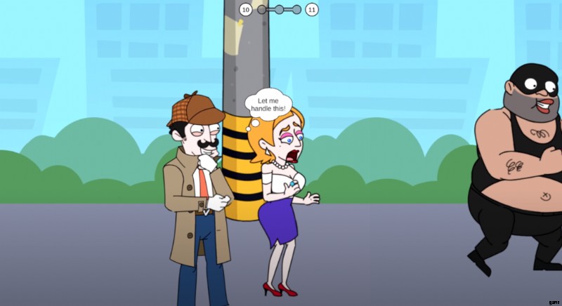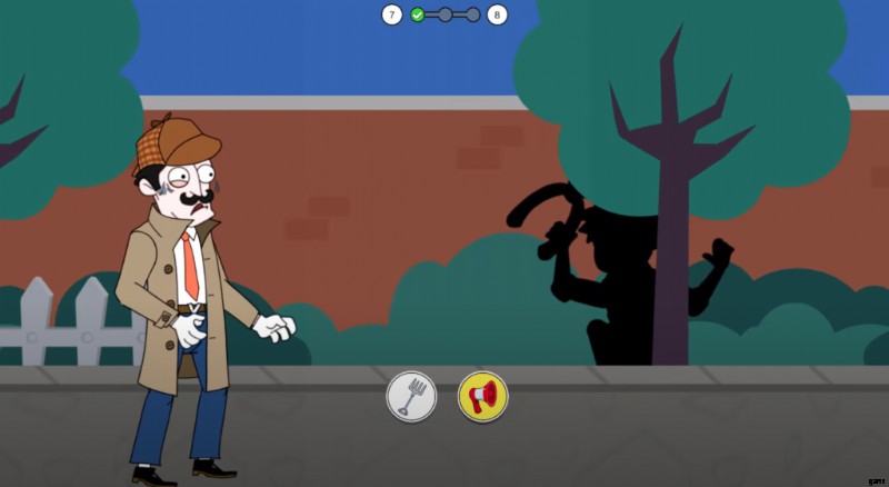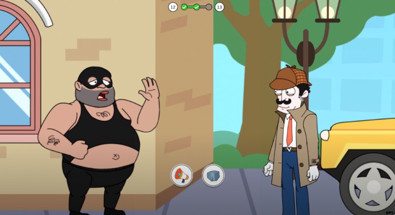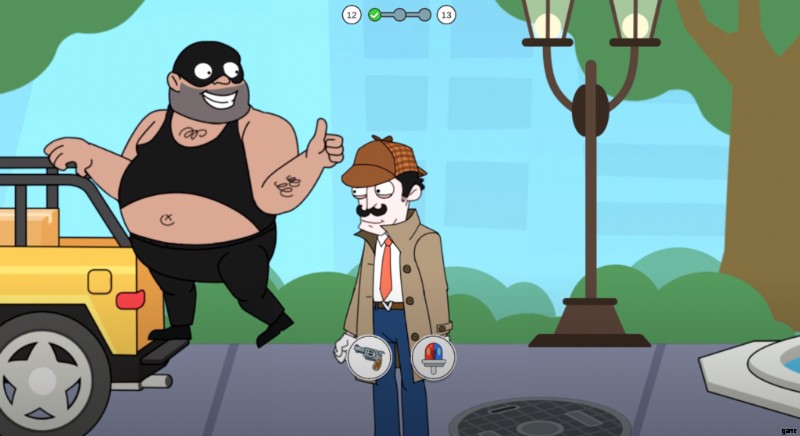 彼はあなたを激しく殴るので、彼に近づこうとしないように警告します。繰り返しますが、2 つの異なる選択肢から選択する必要があります。石または角を選択して、次に何が起こるかを確認してください。ホーンを使用すると、泥棒の近くの家に住む人々の邪魔になり、窓を開けて誰がホーンを作っているかを確認します。窓のドアが泥棒に当たることはほとんどなく、簡単に捕まえて 4 番目のケースを完了することができます。バッグを女性に返し、報酬を受け取って他のレベルのロックを解除してください。