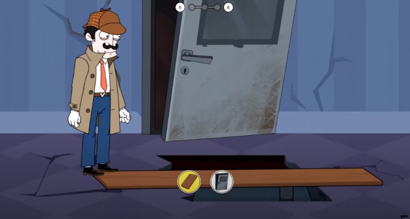 各レベルは 3 つの異なるサブレベルで構成されていることを知っておく必要があります。 、つまり、レベルを完了するには、3 つの異なるパズルを完了する必要があります。 5 番目のレベルは、巨大な亀裂を見つけた廃墟の場所で行われます 床で 爆弾を見つけるために、どんな犠牲を払ってもそれを克服しなければなりません 武装解除する 手遅れになる前に。シーンに到達すると、壊れたドアを選択するか、木の板を選択して道を作るかを選択する必要があります。 木片の選択 両側をカバーし、安全に進める方法を提供するため、正解です。
