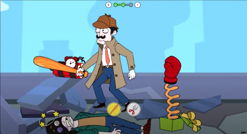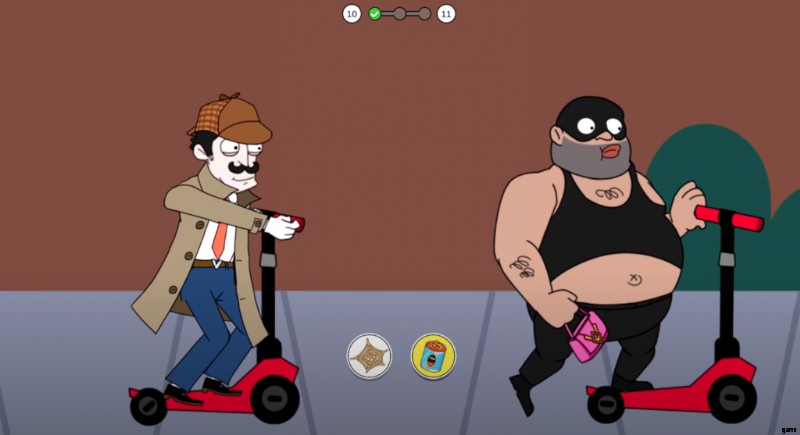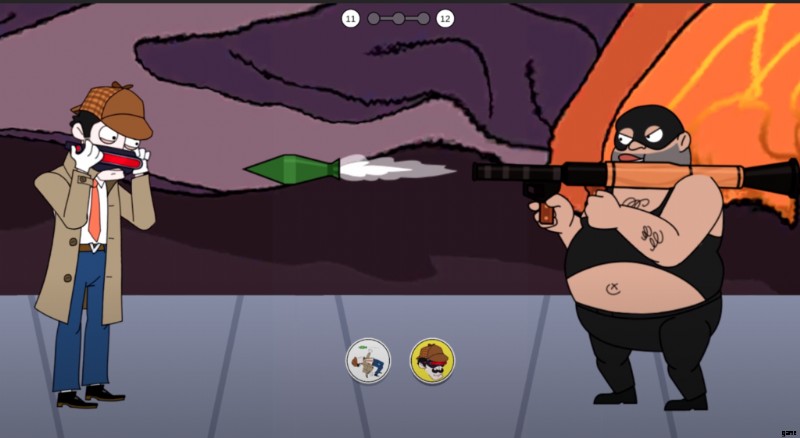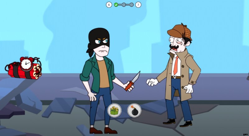 レベルが始まると、その泥棒がロケットランチャーを持って殺すために目の前に立っている別の次元にいることに気づきます。レーザーガンとスタントなど、2 つの可能な選択肢のいずれかを選択して、自分自身を守る必要があります。攻撃中、スタントを実行して身を守ることができますが、害を及ぼす可能性があります。安全な方法でレーザーガンを選択し、ロケットを破壊して事件を解決してください。