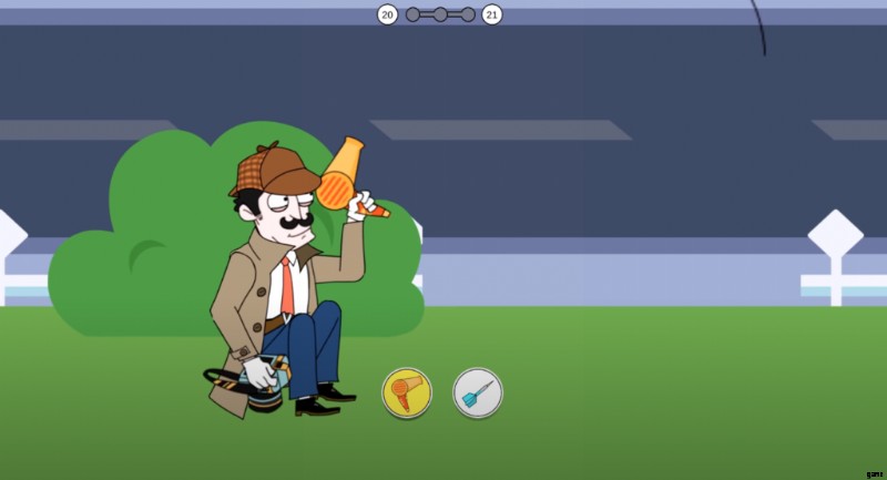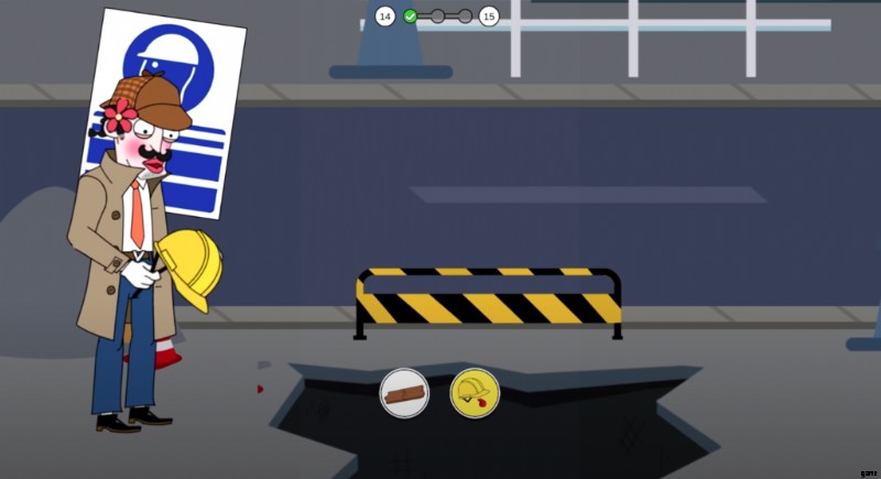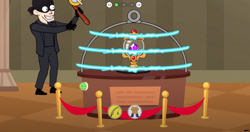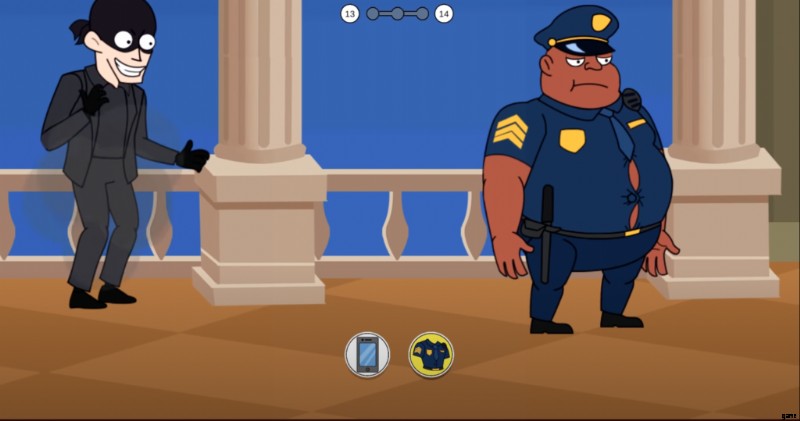 2 ステージと同様に、巨大な犬が吠えています。肉片を選択して人に向かって投げ、犬が攻撃して身元を明らかにできるようにします。レベル 14 の最後に、警察署に電話して、宝物が盗まれたことを知らせます。