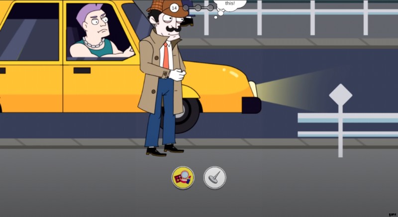 このセクションでは、あなたの探偵が強盗を捕まえるために出てきて、真実を明らかにするためにタクシー運転手と一緒に面白いシーンを作ります。彼はいつものように 2 つの選択肢があるので、彼はどこか女性に似ているように見える面白い外観に適応するメイクを選択するのが好きですが、彼を乗客と見なすタクシー運転手は速く走ります.