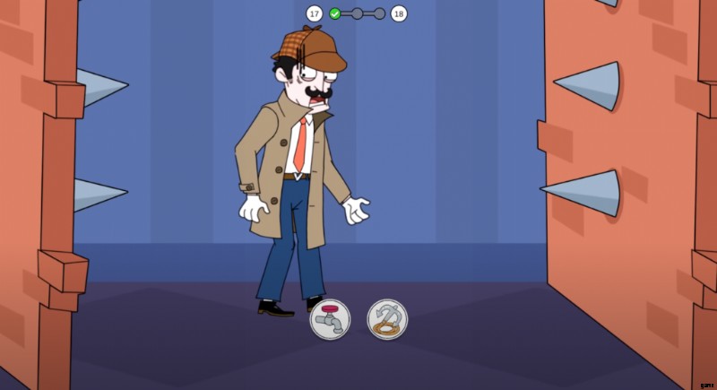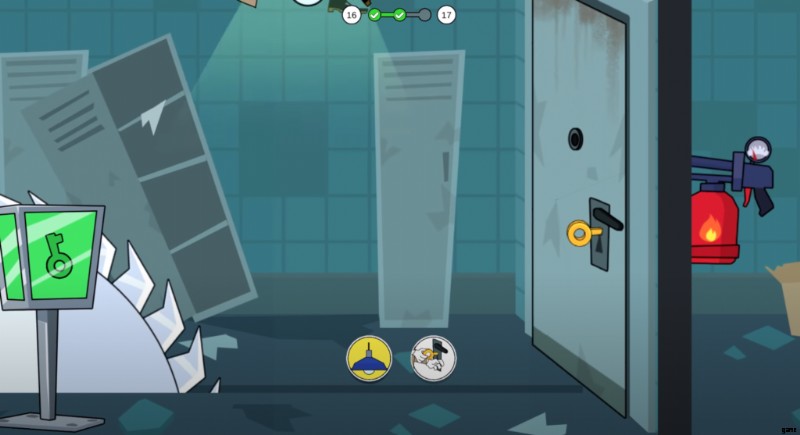 レベル 17 の 2 セグメントに参加すると、2 トラップがあなたを待っています。向かい合う 2 つの壁に鋭いスパイクが迫っています。この 2 つの壁をすばやく克服する方法を見つけなければなりません。タップやフックなど、可能な選択肢が必要です。