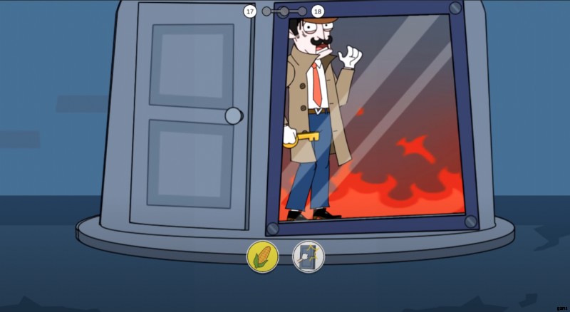 別の致命的なトラップがあなたの侵入の準備ができています.レベル 17 に到達すると、ドアがロックされていることがわかり、それを開くための鍵を見つけるように求められます。金属製の部屋の中に鍵が置かれていますが、中に入ると火が燃え上がり、次のような 2 つの選択肢が目の前に表示されます: