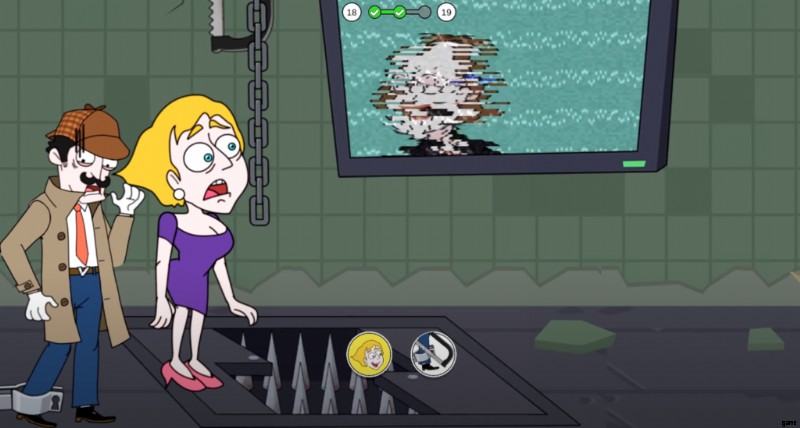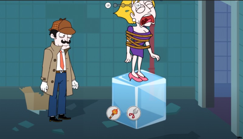 レベル 18 では、ファンに接続されたロープでぶら下がっている少女が氷のブロックの上に立っています。あなたの目標は、少女を死から救うことです。したがって、次の 2 つの項目のいずれかを選択してみてください。