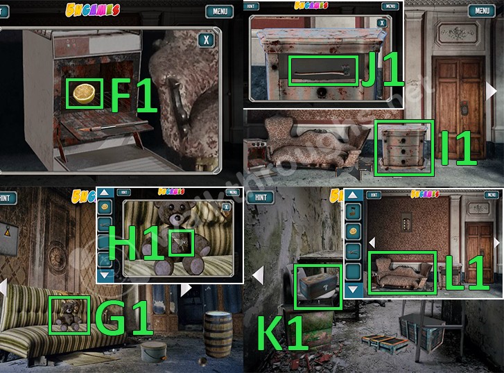 - ソファルームに行く テディベアをクリックします。 (G1)