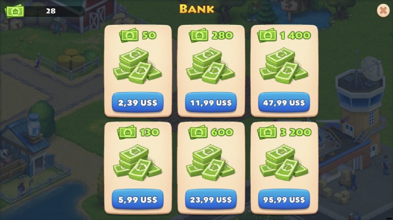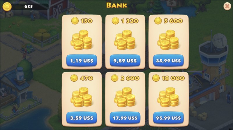 このゲームの主な目標は、可能な限り最高の町を建設し、すべてのイベントに参加することです! 生産性を維持 このゲームでのアイドル時間を最小限に抑えるために、できるだけ多くの商品を手に入れてください。新しいオプションのロックを解除するには、町のレベルと人口を増やす必要があります。 レベルを上げています さまざまな建物のロックを解除できます。 工場、住宅、 コミュニティの建物 農業用建物、装飾品 などなど!まず、できるだけ多くの農場や工場を建設してください。これにより、町の成長が加速し、商品を他の人に販売したり取引したりできるようになります!
