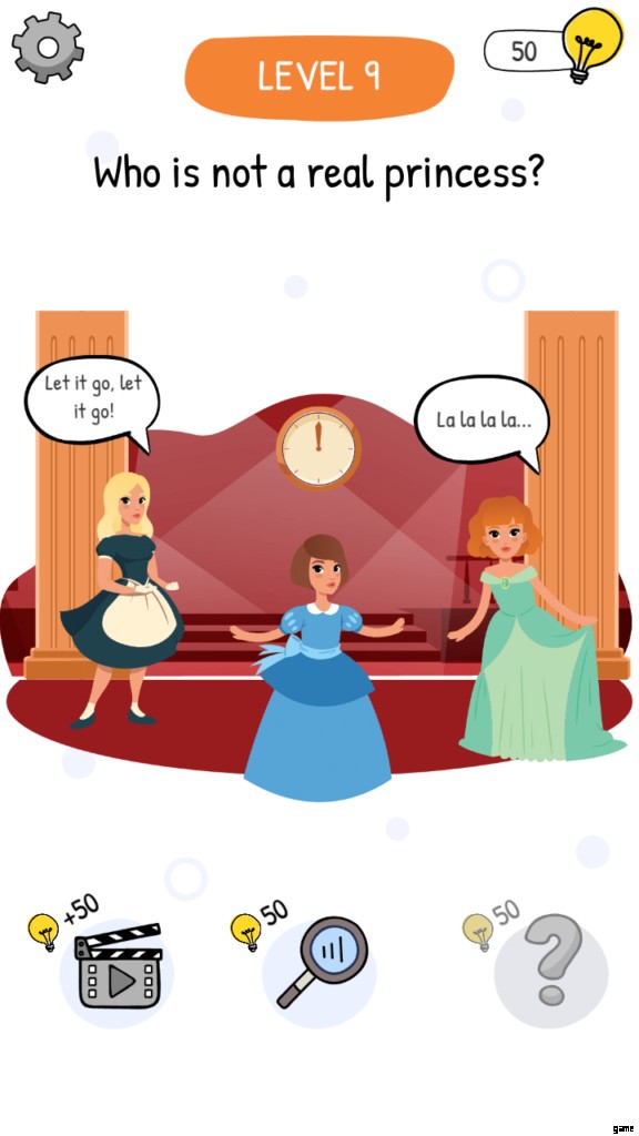 3 人のプリンセスがあなたの正体を明らかにするのを待っています。ヒント システムを除いて、役立つツールが提供されていないため、パズルは簡単ではありません。服をたたくと髪の毛がうまくいきません。したがって、既成概念にとらわれずに考える必要があります。シンデレラが一定期間で元の状態に戻る話ではありません。トリックがうまくいくか見てみましょう。