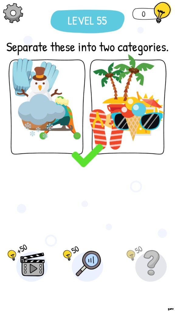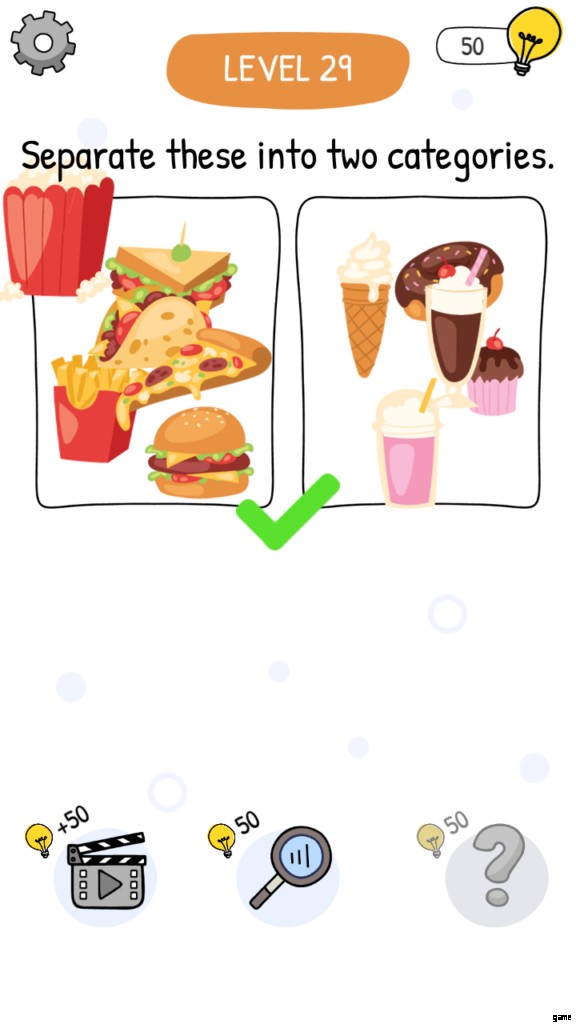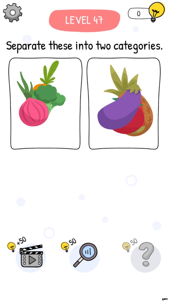 そこには、2 つのカテゴリに分けて数十のアイテムが用意されているようです。今回のレベルは、前のレベルと同じように簡単ではありません。すべてのオブジェクトを 2 つのカテゴリに分けると、レベルが完了し、新しい課題の先頭に立つことができます。すべてのパズルは刺激的で、完了するのがクールです。