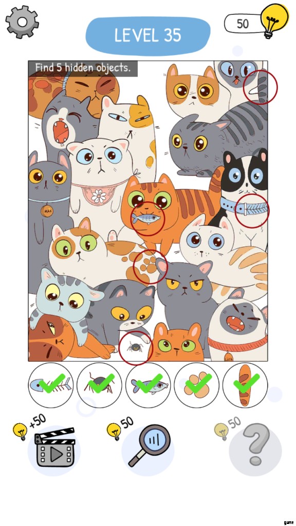 隠されたオブジェクトのレベルは、パズルを解くためにどんな犠牲を払っても隠されたアイテムを見つけなければならないので、いつでも楽しくプレイできます。たくさんの猫が魚などをくわえ、虫と遊んでいる美しいシーンが紹介されています。与えられた 5 つのアイテムを見つけてパズルを完成させます。すべてのアイテムを見つけるのが難しい場合 – 以下の画像を見つけて、不足しているアイテムを正確に見つけてください。