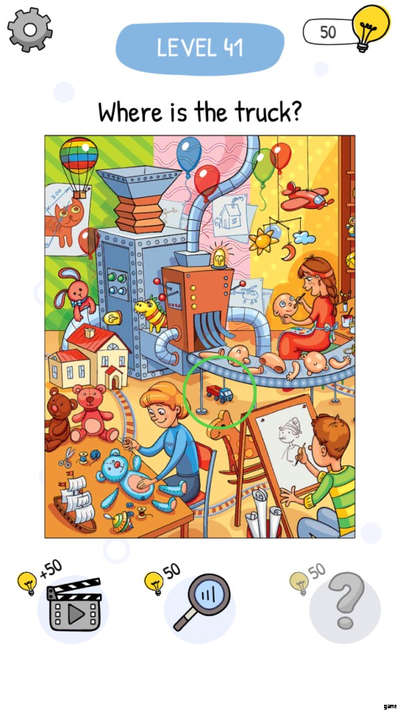 前のステージを完了した後、ゲームでは、最も暗い部屋でトラックを見つけて、ごく一部しか光っていないものを表示して、視力が制限されているものを表示できます.あなたはプレイルームにいて、多くの子供たちがおもちゃで遊んでいます。トラックを見つけてパズルを完成させなければなりません。