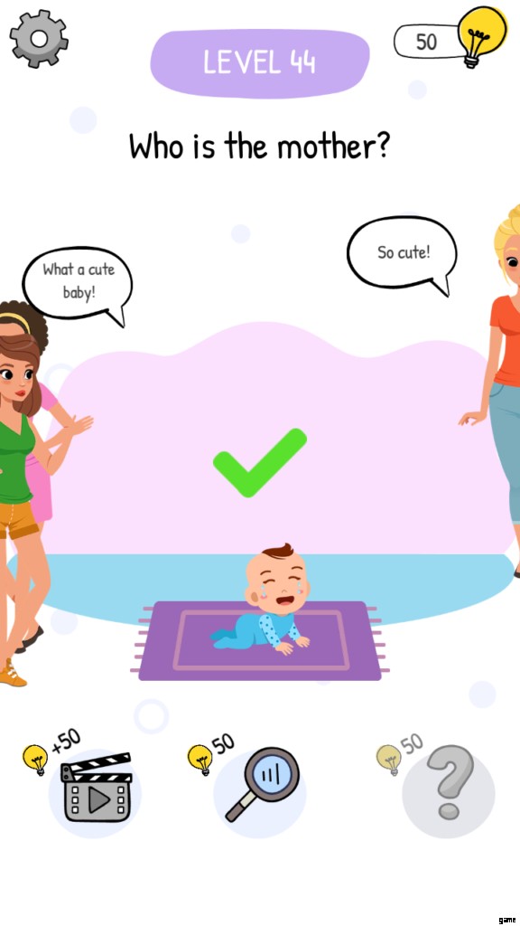 赤ちゃんがリグの上を這い回っています。あなたの目標は、3 人の女性のうちの 1 人である赤ちゃんの母親を見つけることです。 3人の女性全員が、ハイハイしている赤ちゃんの母親であると主張しています.機転を利かせて手がかりを見つけ、お母さんに近づき、赤ちゃんを見つける手助けをしましょう。緑色のカエルの女性を脇にドラッグして、赤ちゃんが泣き始めるかどうかを確認してください。